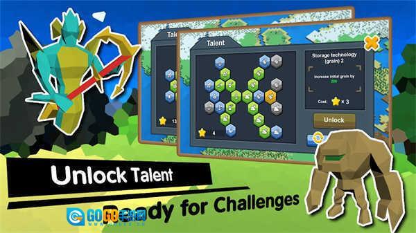 不同种族都有独特的种族技能,有的带着坚固的护盾,有的配备锐利的长矛!每个种族还设有专属天赋系统,每个种族提供25种天赋技能供你自由搭配定制,随着游戏进程解锁天赋点数,用来强化你的部队吧