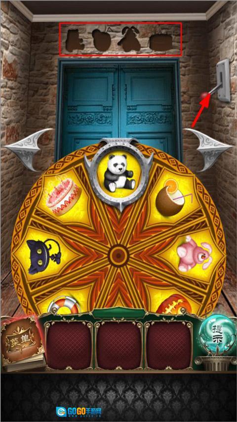 第九关的操作是这样的:我们需要在中间的转盘上挑选出门上对应的图案,选对图案后拉动右侧的拉杆。等四个图案都选对了,门就会打开,然后就能进入第十关了。