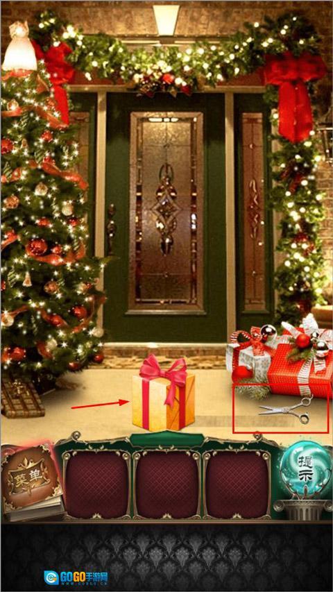 第七关时,我们将右侧的礼物挪到中间位置,随即发现地面上有一把剪刀。接着,我们用这把剪刀拆开中间的礼物,从中取出一把钥匙,并用它打开大门。大门开启后,我们便进入了第八关。