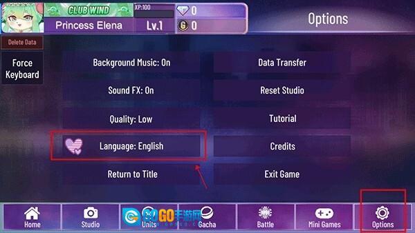 进入游戏内的“options”设置菜单,选择“language”选项。