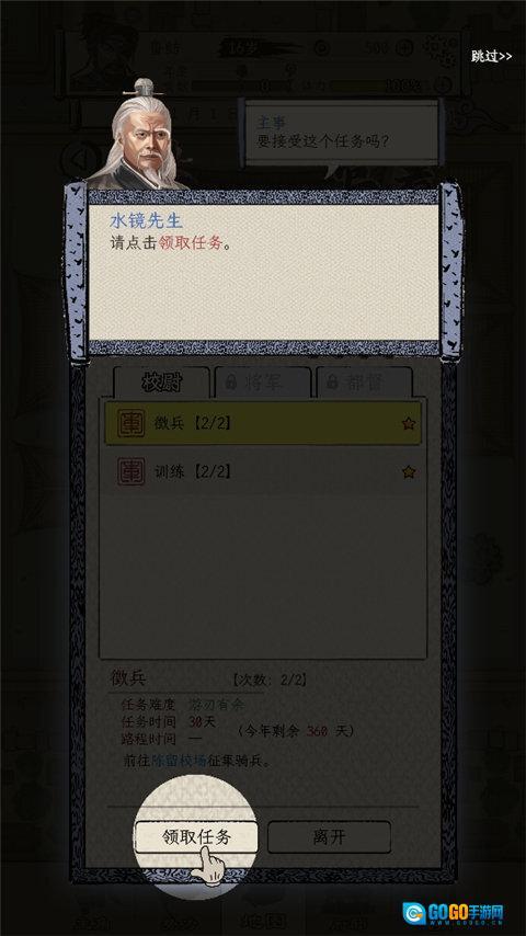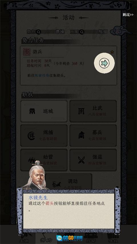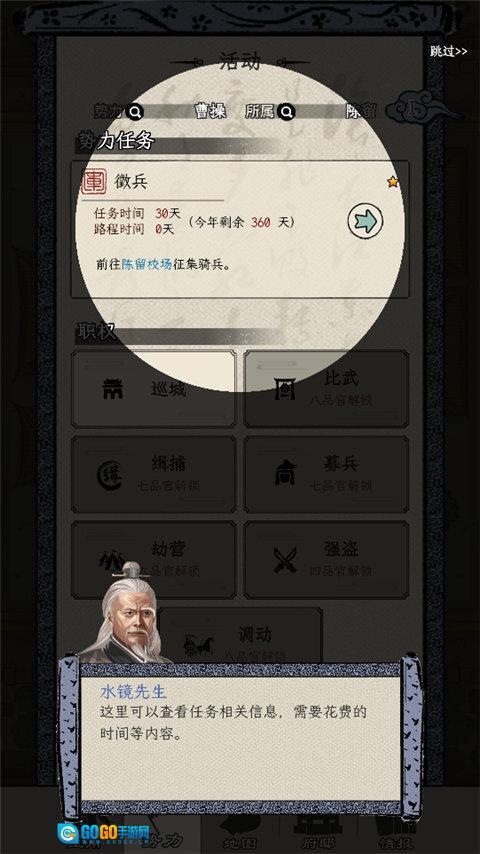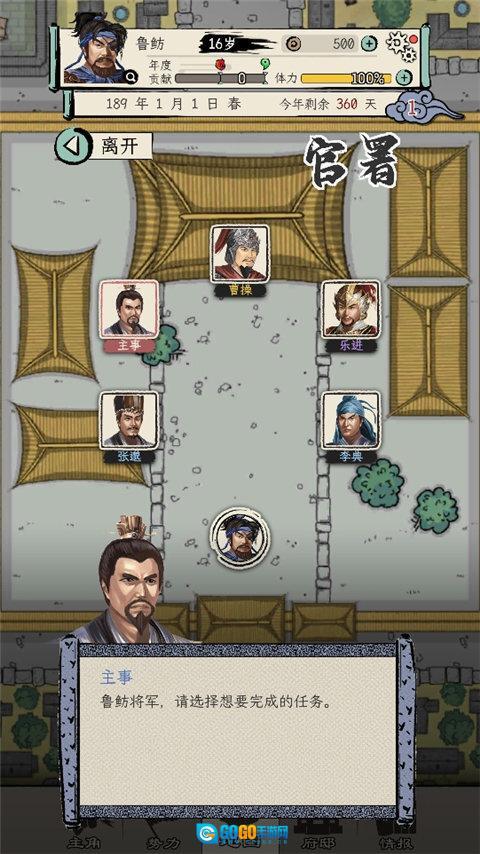 前期跟着主线推进就行,但最好卡着进度升官——升官太快容易变成憋屈的“弱智太守”,想做事没能力,资源也总是不够用。比如如果晋升需要2功3过的话,可以先故意混着攒够2个过失,再去做任务凑齐2点功绩。