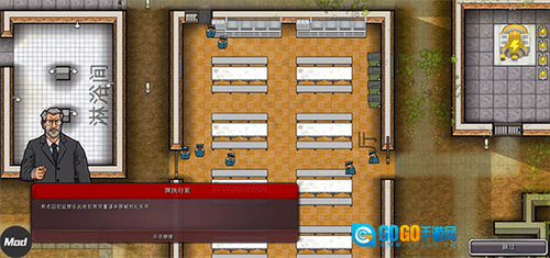 点击场景里的小圆点就能部署警卫,让他们站岗或巡逻,借助警卫巡逻能防止囚犯搞小动作。