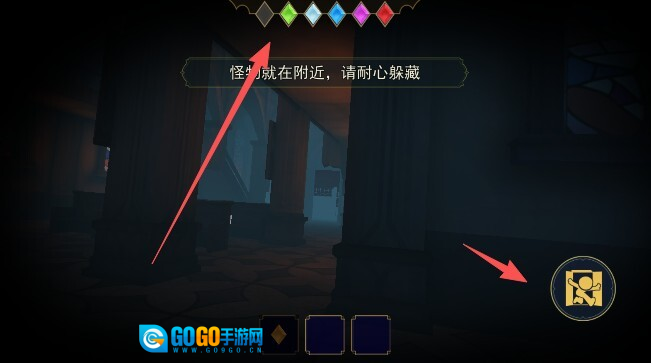 在确认怪物已经离开、周围环境安全后,前往大门处,把你收集到的所有宝石逐一镶嵌好,然后成功逃离这里。