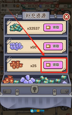 进入补充资源窗口,点击【领取】按钮获取升星徽章。