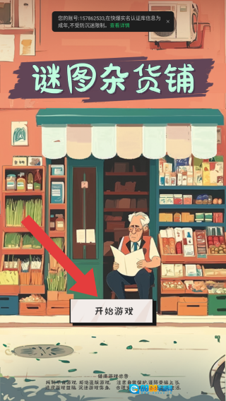 点击开始游戏按钮后,映入眼帘的是卡通风格的杂货铺场景,一位老人正坐在店铺前看报纸。