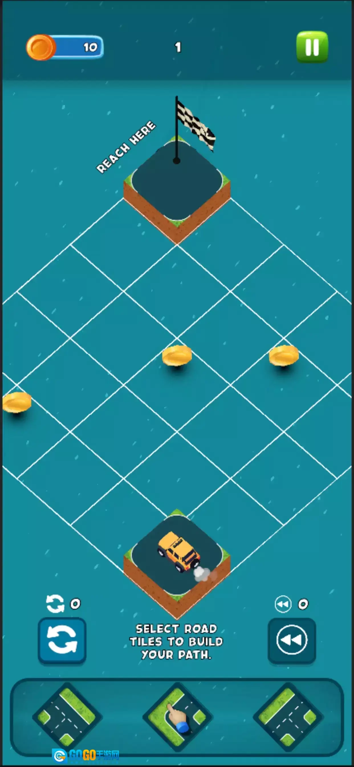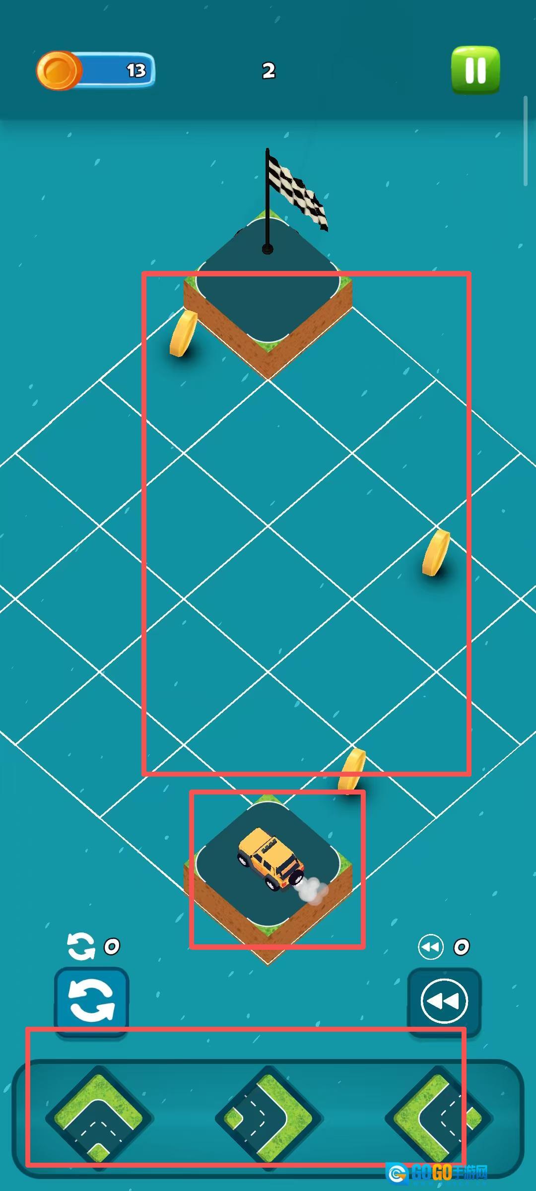 在关卡里操控车辆,借助下方的道路模块,通过合理摆放来搭建路径,与此同时要留意收集金币,规划好车辆的行驶路线,使车辆能够顺利前进。
