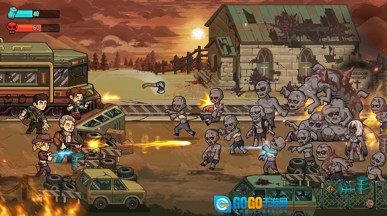 游戏采用自动战斗与手动技能释放相结合的混合模式:英雄会自主攻击僵尸,而在决定胜负的关键时刻,则需要玩家手动触发大招来扭转战局。