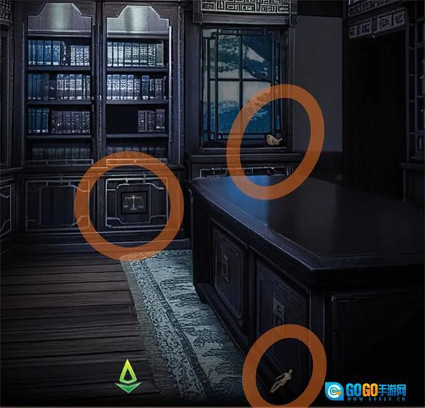 拾起地面上的木偶,拿到窗台上的木鸟,点击书架下方的天平图案,把砝码放置上去。