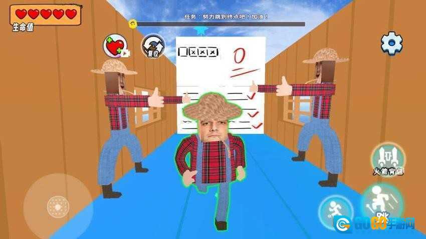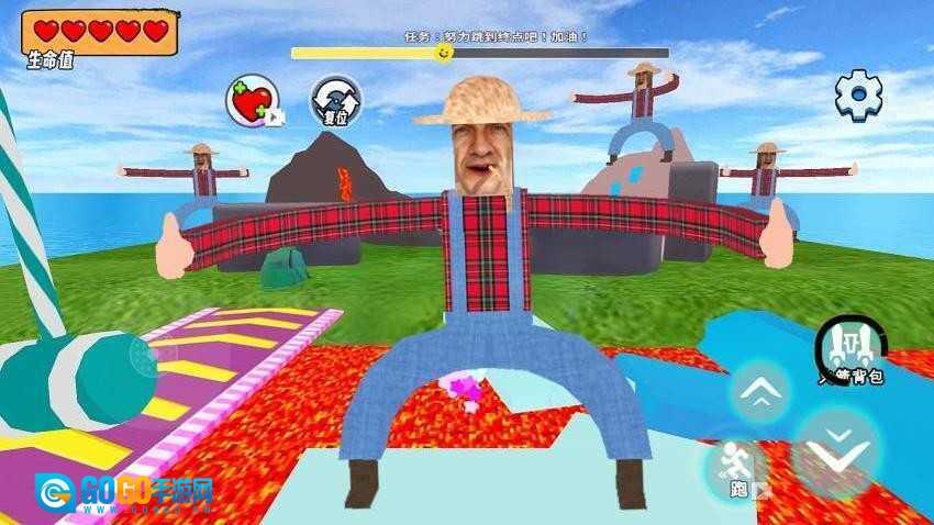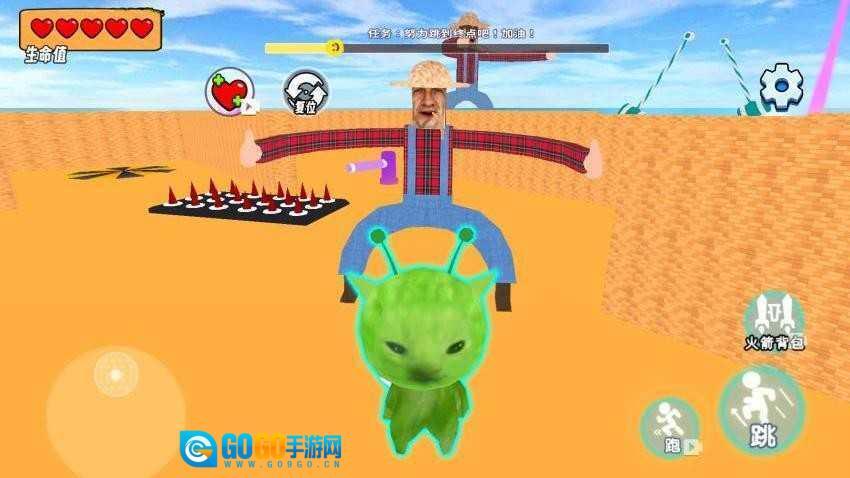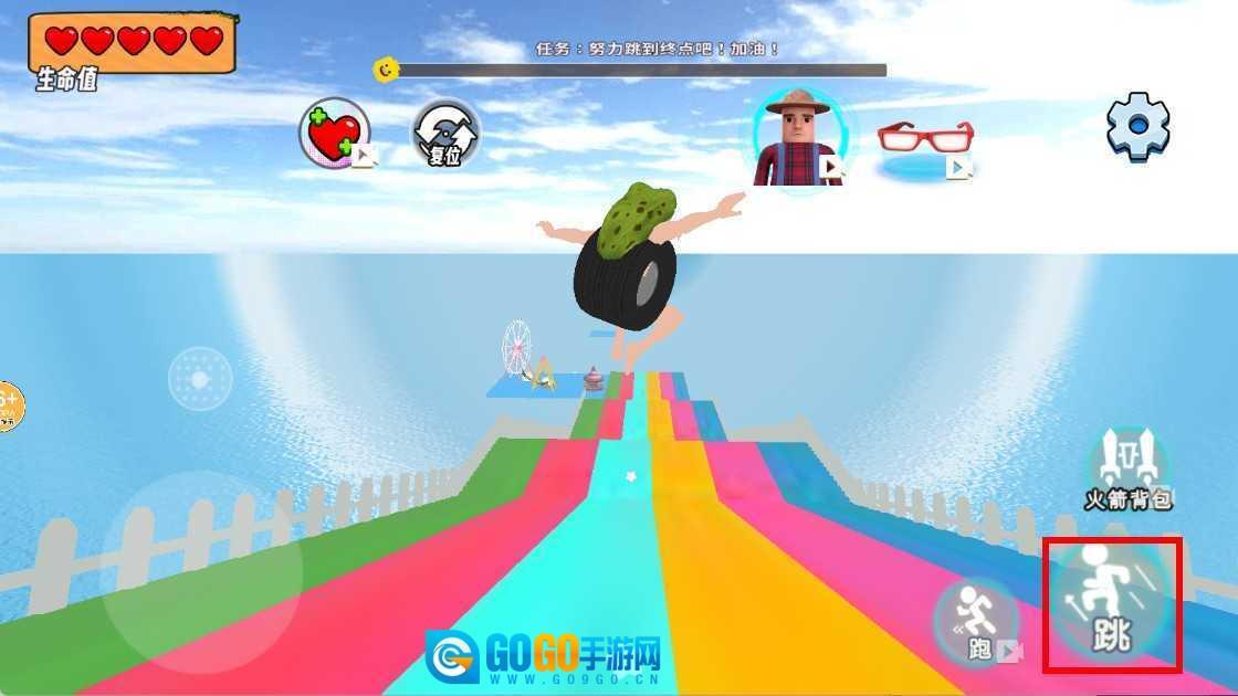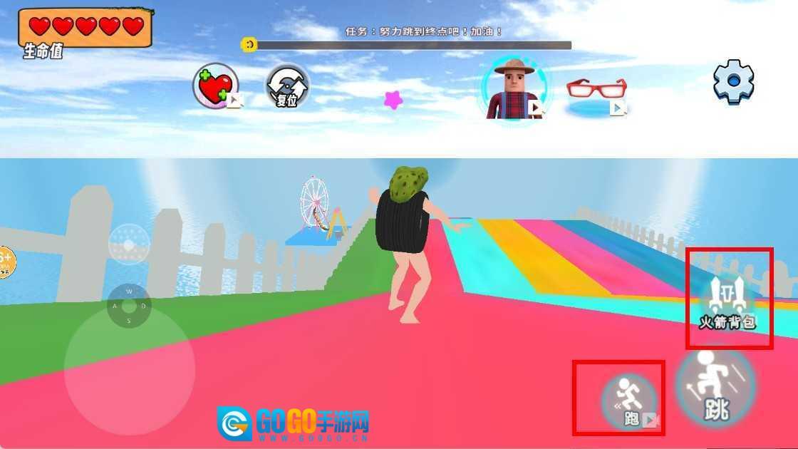 根据实际情况,你可以点击“跑”按钮来提升角色的移动速度,另外还能借助火箭背包,帮助角色更快速地到达终点。