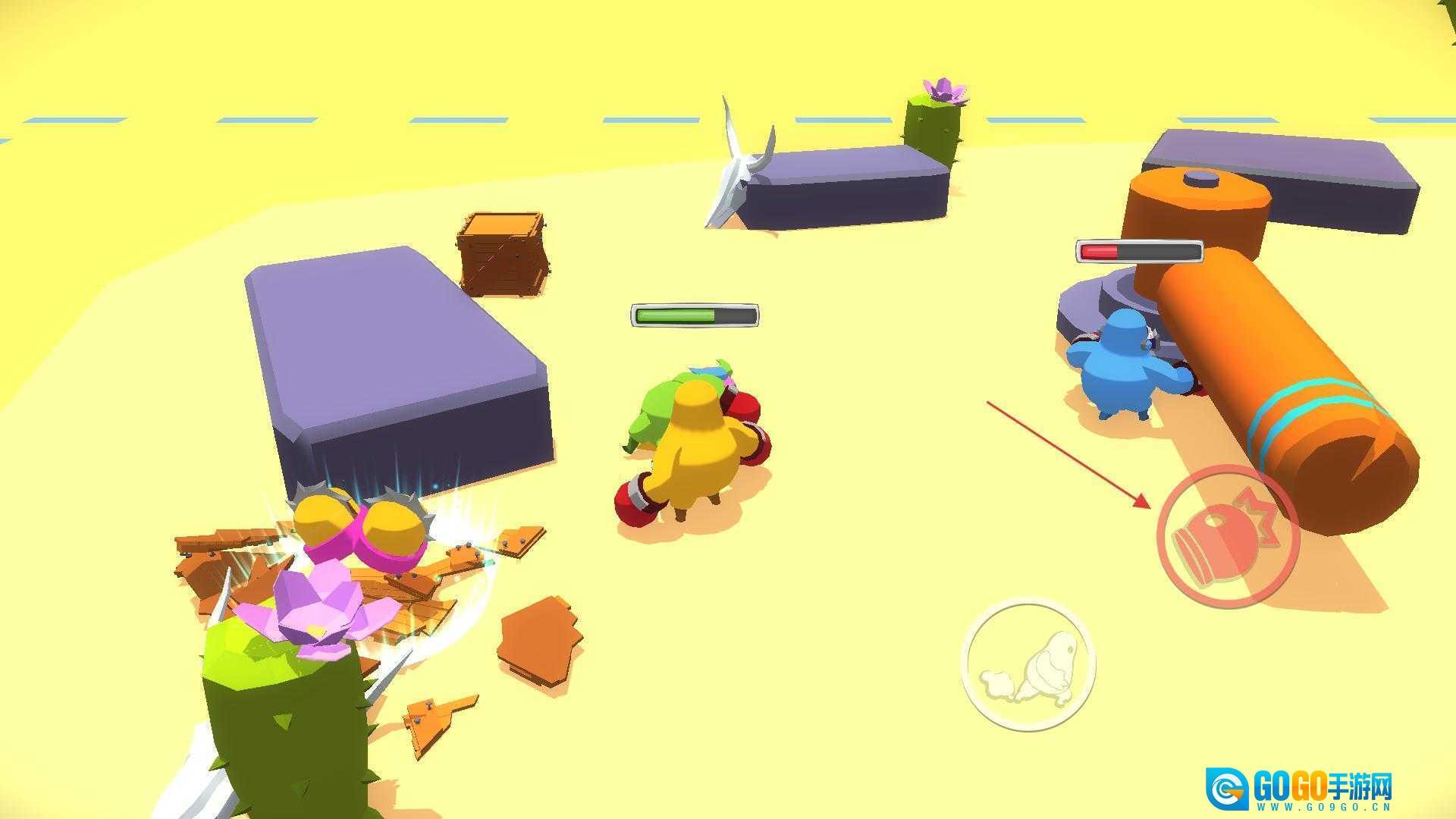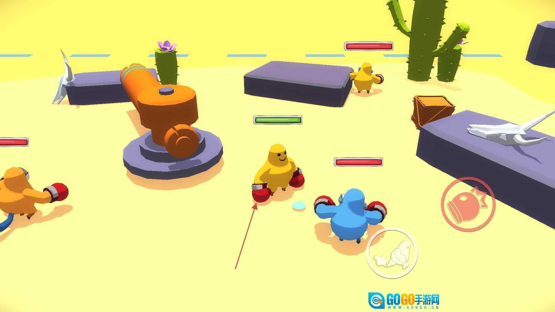进入游戏的对战场景后,操控角色在场景里移动,当遇到其他颜色的角色时,借助角色的拳击技能,与对手进行战斗。