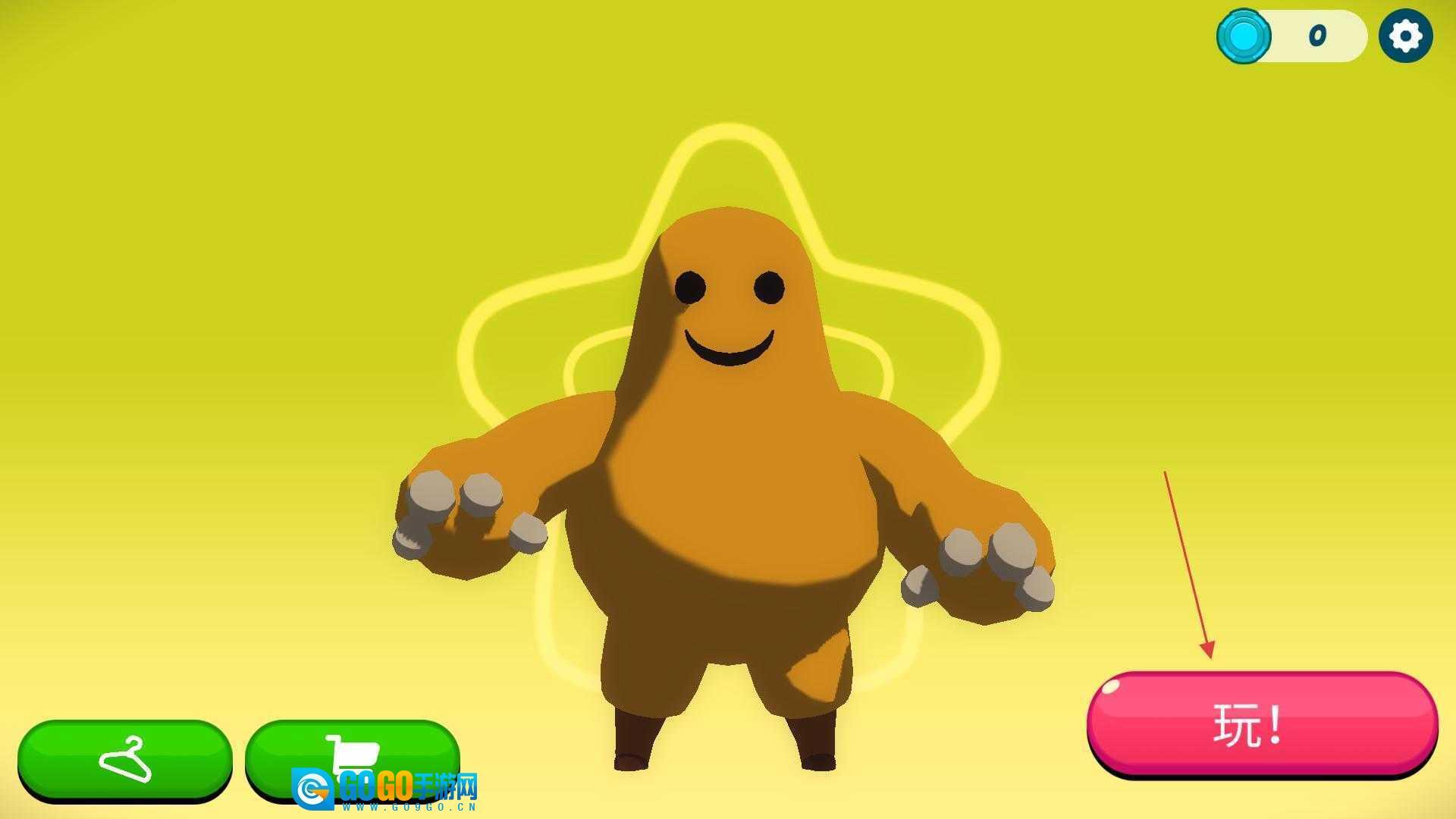 打开游戏,来到启动页面,这里有可爱的角色形象,点击“玩”按钮,就能进入游戏对战场景了。