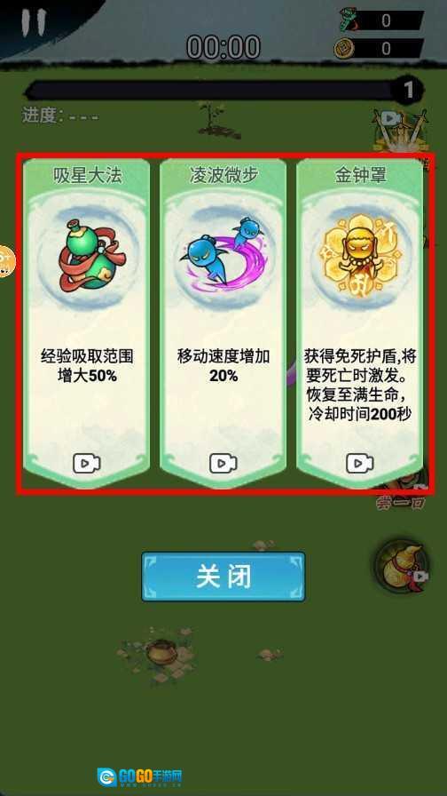 在技能选择界面,你可以从吸星大法、凌波微步和金钟罩这几项技能中进行挑选,只需根据实际的战斗需求来选择合适的技能,就能为你的冒险之旅提供有力的帮助。