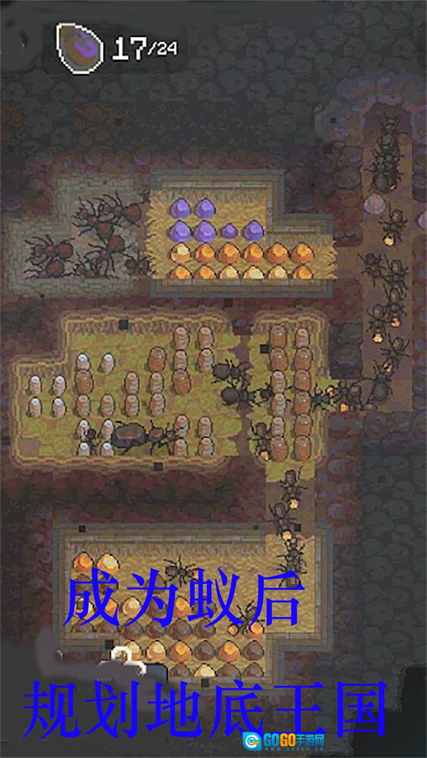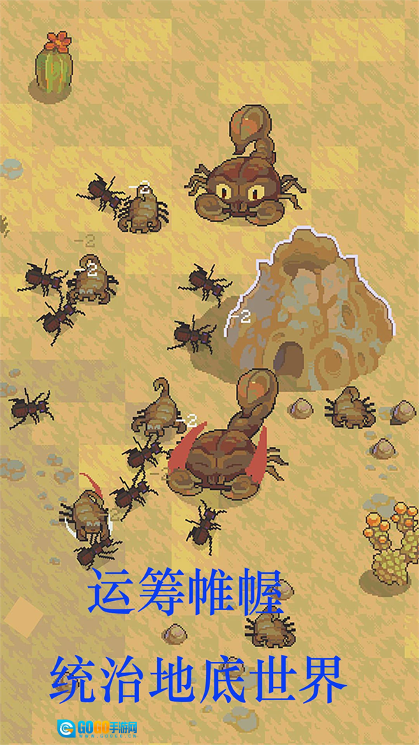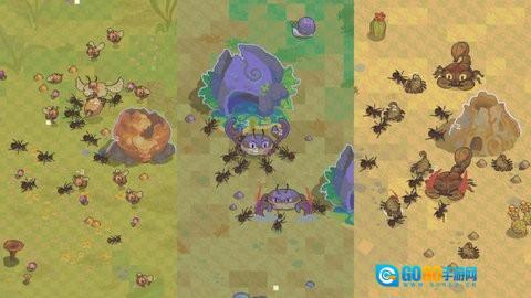 寻觅珍稀物品,升级强化蚁群,与不同蚂蚁派系竞争,持续提升实力。