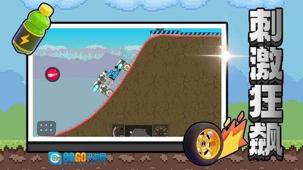 挑选场景,驾驭赛车,操控方向并加速,在横版地图上冲坡躲避障碍。