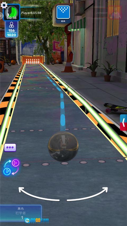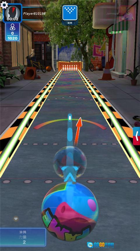 长按保龄球续力,在中间发射是最完美的。