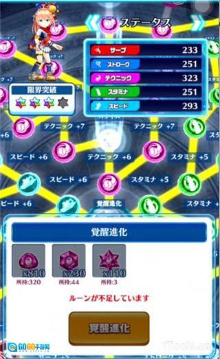 编队界面和白猫那边也挺像的。不过有一点得提一下,白猫网球里的角色没有“亲密”这个设定,所以要觉醒角色的话,得点击角色中间的“觉醒进化”按钮才行。