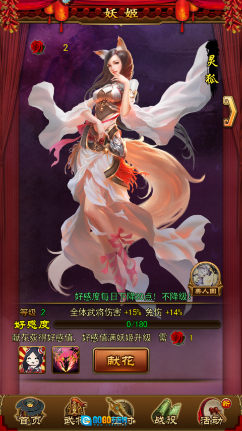 消耗鲜花进行献花操作,能够提升妖姬的等级,从而获取更高的伤害加成与免伤加成,还可以解锁新的形态和技能。在不同的战斗场景里,挑选不同的技能往往能带来意想不到的效果。