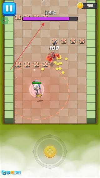 在战斗过程中操控角色进行移动,角色会自动对敌人发起攻击,成功击败敌人后能够获取金币与经验值,需要留意避开敌人的攻击区域。