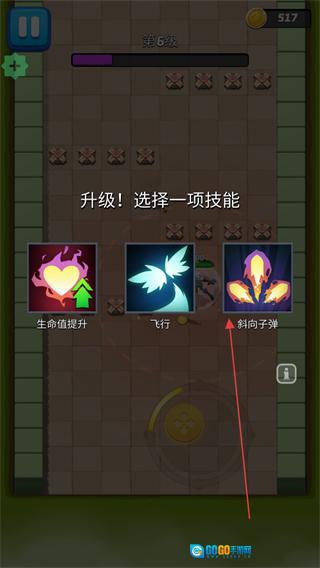 升级时挑选合适的技能,比如斜向子弹,能优化攻击方式、扩大攻击范围,从而增强战斗力,以便更好地应对后续更强大的敌人。