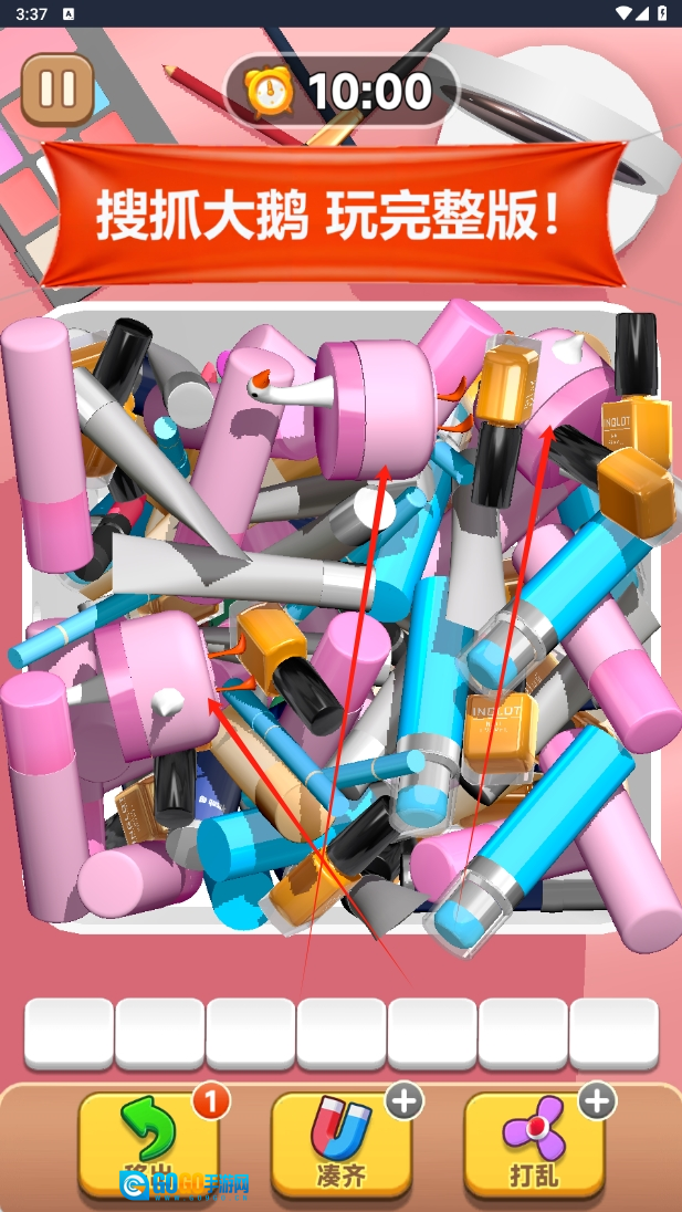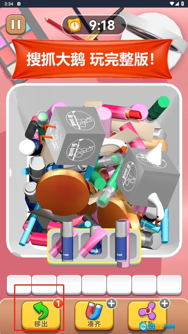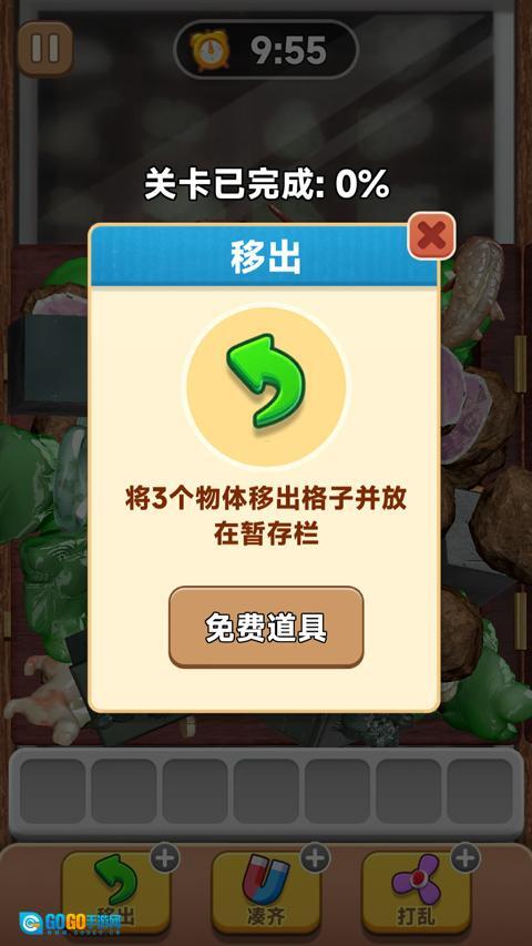 玩家能够借助道具获得帮助,就像下面图片展示的那样,可以把3个物体从格子里移出来放到暂存栏中。