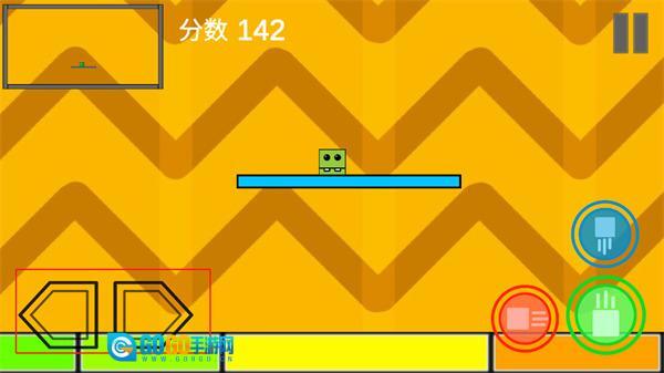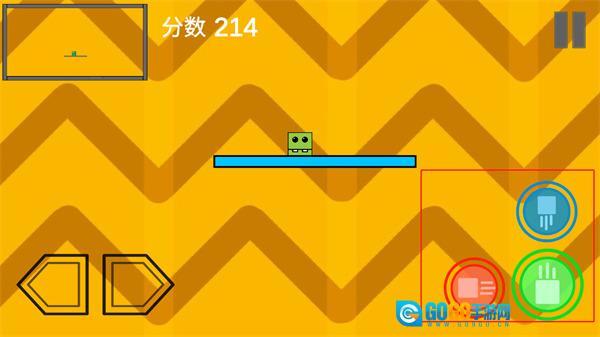 玩家可通过点击蓝色按钮实现跳跃,红色按钮用于快速移动,绿色按钮则能触发快速下落。
