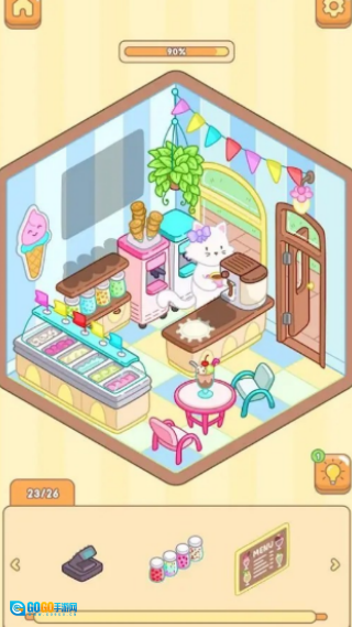 走进小猫的甜品屋,点击页面下方的贴纸,帮它把店铺布置得更温馨些,再添上几句招牌标语吧。