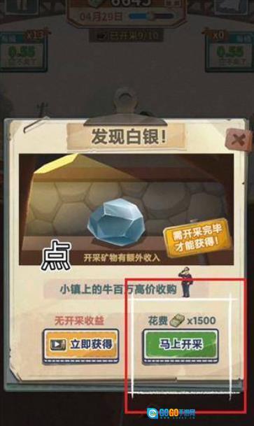 发现矿石,点击右下角探测仪将矿石挖出来。