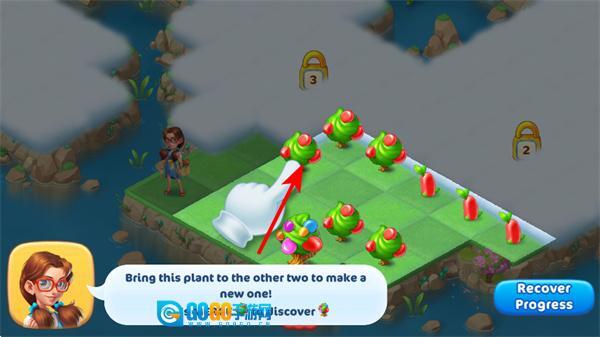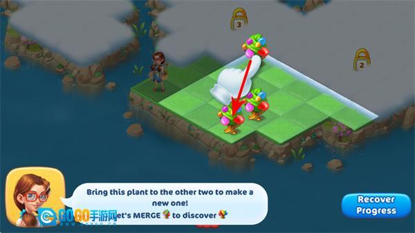 按照提示把相同的三株植物合并在一起,就能得到新的植物。这一操作是解锁新物种、让岛屿景观更丰富的关键,一定要保证合并时的位置准确。