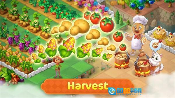 通过合并木材可以建造木房子,进一步升级还能打造豪宅,同时还能解锁珊瑚礁古城堡、月亮城堡等独具特色的建筑;此外还有各种各样的农田能够产出食材,让建设的维度更加丰富多元。