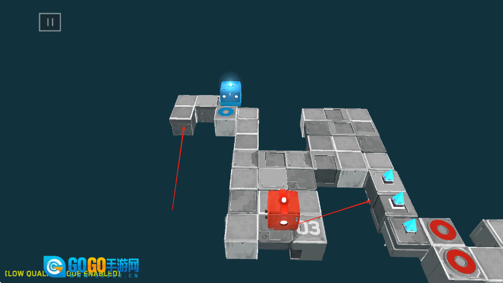 在关卡里,你得把机器人引导到对应颜色的标记点上,有些关卡还要求多台机器人同时待在标记点。你可以借助“传送门”机制来切换操控的角色,也能利用箱子这类道具去阻挡机关被触发。