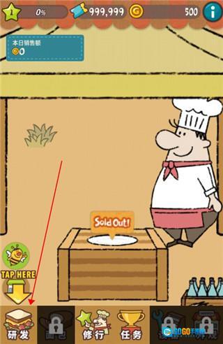 在游戏的初始阶段,玩家尚未拥有任何产品,需要通过点击“研发新产品”按钮来开启三明治的制作流程。