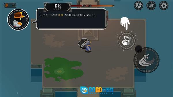 用右侧的攻击键攻击敌人,敌人死亡后会掉落装备,此时点击互动键,就能捡起装备并学习它。