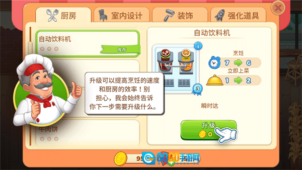 开一家新餐厅,把它装饰成大家喜欢的样子,在美味山丘成为最棒的厨师。可以给餐厅装一套新音响系统,迎合顾客的音乐喜好,这样能收到更丰厚的小费;也能买台全新的电视机,让顾客等位点餐时不无聊。还能当自己餐厅的室内设计师!重新设计墙壁和地板,用亮眼的画作和窗帘装点餐厅。