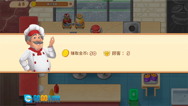 进入游戏后,系统会提供新手引导,接着你需要为顾客制作美味的食物,而且每个关卡开启前都会展示通关要求。