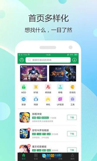 全球首家做到大型游戏一键安装,能自动适配您的机型,让您不用再为找数据包而烦恼。