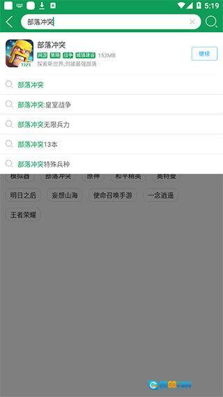 再点击首页顶部的空白输入框,输入游戏名称,比如部落冲突。
