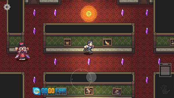 益智向右走到尽头,乘坐电梯上到二楼,把散落各处的紫水晶都收集起来。不过得小心,会有猴子怪物追你,而且不止一只!你得灵活地移动,抓住机会找藏身的地方,躲开它们的追杀。