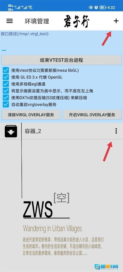 进入环境管理界面后,点击右上角的加号按钮来创建容器,接着点击该容器右侧的三个点图标。