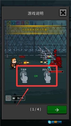 轻触屏幕即可开火,击败僵尸敌人。