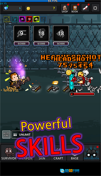 战斗场景采用复古像素风格打造,构建出紧张感十足的废土世界,再配上华丽的技能特效,使每一次攻击都拥有强烈的视觉冲击力。