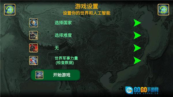 设置自己的世界,如国家、难度、军事力量等;
