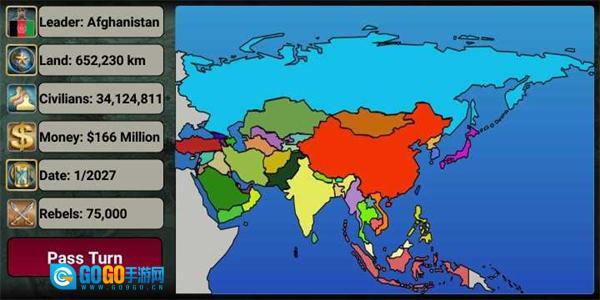 你可以挑选亚洲板块里的几个大国参与游戏,进而开启称霸亚洲的征程。