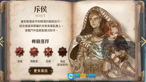 在游戏里,斥候这个职业的伤害处于顶尖水平,同时也是最适合挂机的职业,其定位和刺客相近。该角色的强势期主要在后期,因此不太适合用于前期的开荒阶段。