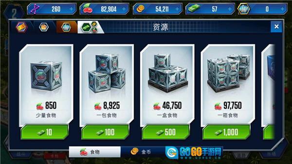 食物是恐龙的升级资源。玩家获取食物的途径包括食物工厂生产、升级该工厂以及用现金购买等。一旦玩家等级达到对应要求,还能对食物工厂进行升级,从而提高食物的产出数量。