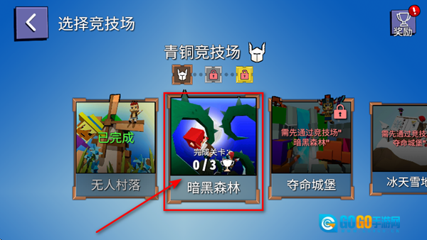 游戏内设有大量竞技场可供玩家自主挑选,若选择暗黑森林关卡,玩家需凭借自身实力完成挑战,方可解锁后续关卡。