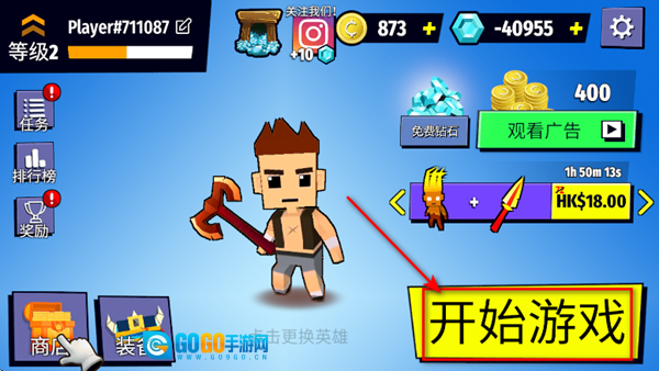 进入游戏后,主界面包含任务、排行榜、奖励、商店、装备等多个功能模块。