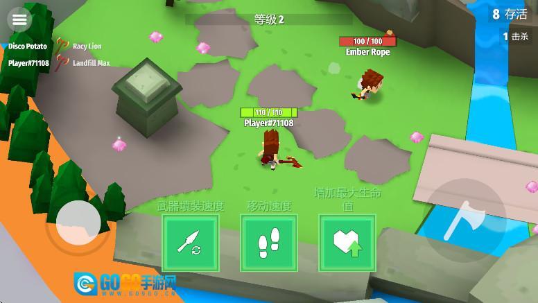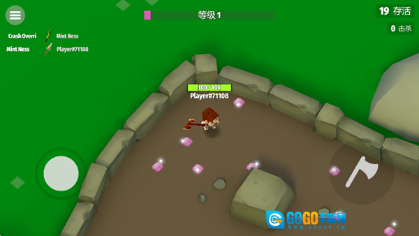 操控好角色的行进方向,借助手中的斧子,消灭地图里的敌人,持续增强战斗能力。