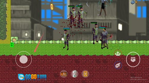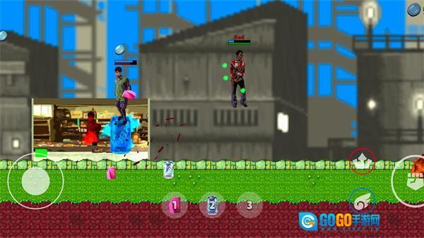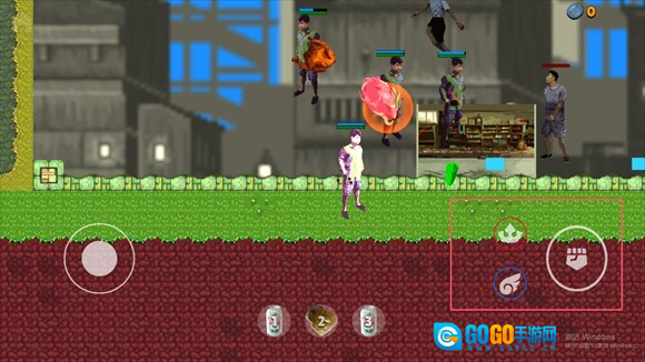 右边的按钮分别为攻击键和跳跃键。