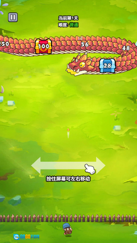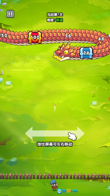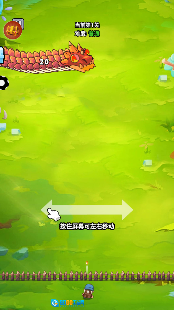通过点击并拖动屏幕来操控角色移动,角色会自动锁定巨龙发起攻击。