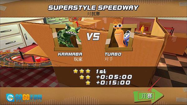 选择的是对抗赛模式,所以会和AI对手在同一条赛道上竞赛,界面上还展示了具体的得星规则。